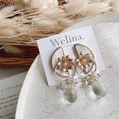半円のホワイトシェルにゴールドフラワーをあしらいました❁︎